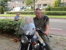 Samen met Papa op de motor.