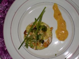 En een taartje met kerrierijst, met allerlei lekkers er doorheen en een heerlijke saus.
